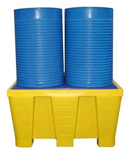 Umweltfreundliche Auffangwannen für Fässer aus Kunststoff (umweltfreundliches Polyethylen) zur sicheren Lagerung von 2 Fässern à 200 Liter.
