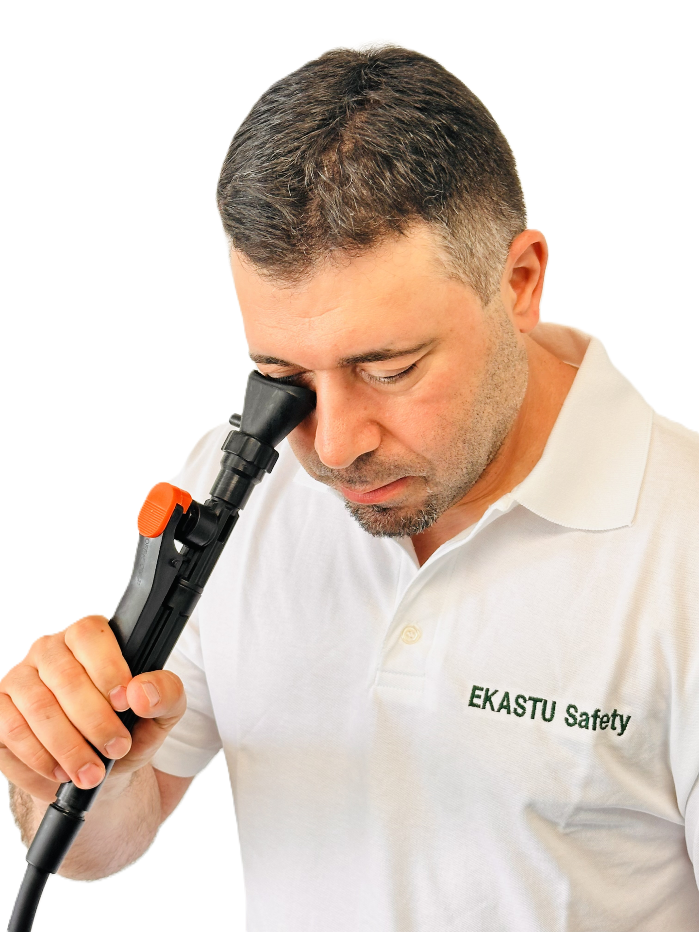 - la douche oculaire Aqua Push d'EKASTU est idéal pour un rinçage rapide et efficace, dans le cadre des premiers soins, après un accident oculaire